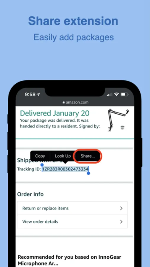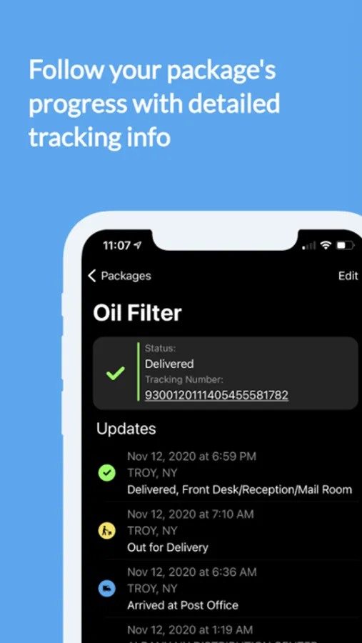 - Easily add tracking numbers using your device's camera (iPhone only)