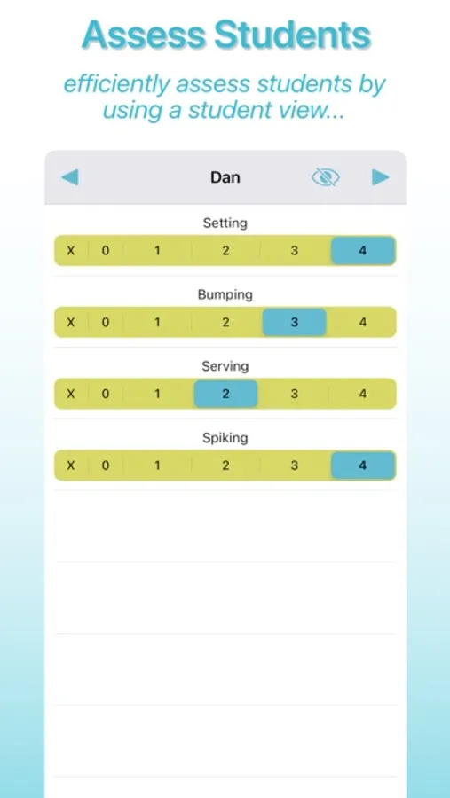 - Assess a class by the student view to assess all components for a single student.
