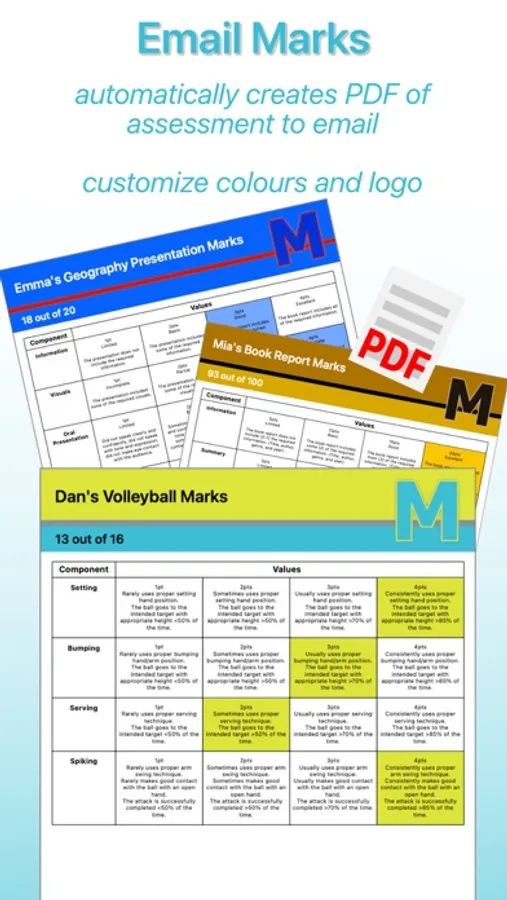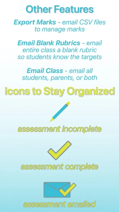 markBook is an assessment app for teachers that allows you to easily assess, communicate, and return student marks. Create classes of students and unique rubrics that directly meet the needs of your curriculum. Save time designing your assessment strategies with markBook. Student assessment has never been so easy. No subscriptions, no ads, no limits.
