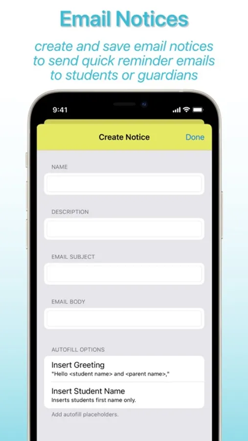 - Create Email Notices to have pre-made emails with autofill options ready to send.