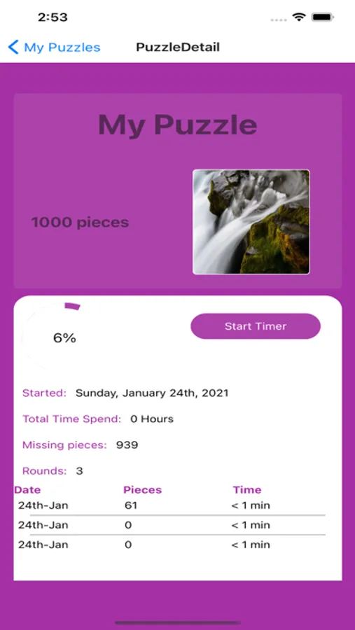 Puzzles Timer will help you track your puzzles and the time you enjoyed doing them!