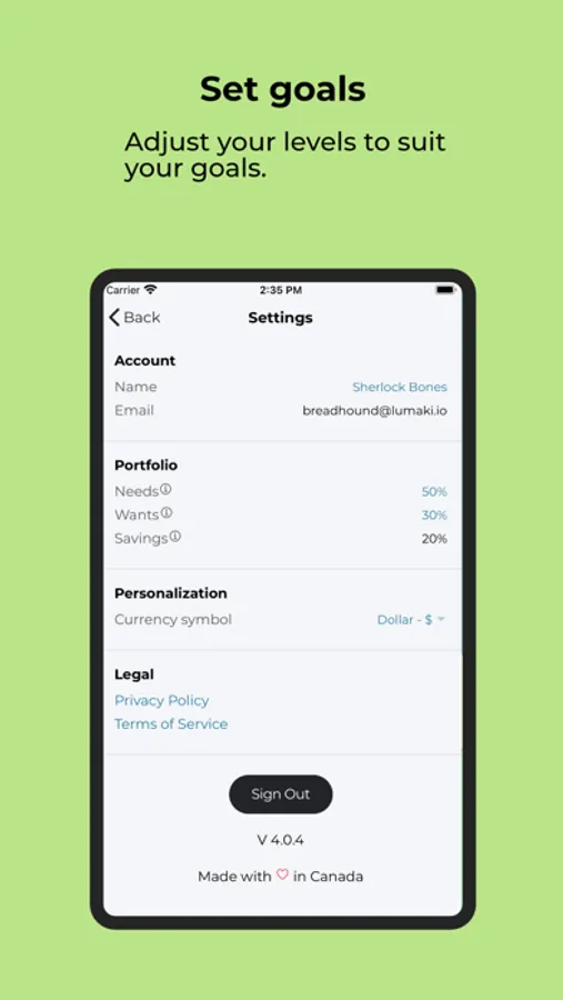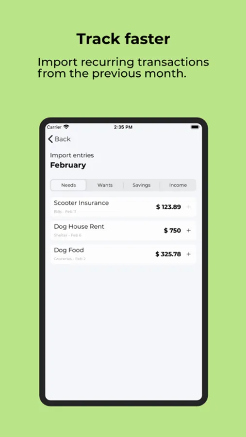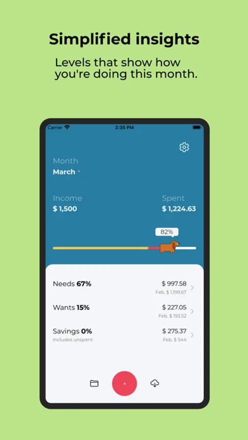 breadhound is based on the 50/30/20 rule. 50% set aside for things you need, 30% for things you want, and 20% left over for savings. With this you get a high level understanding of how your money is being spent and how much is left for savings at the end of the month.