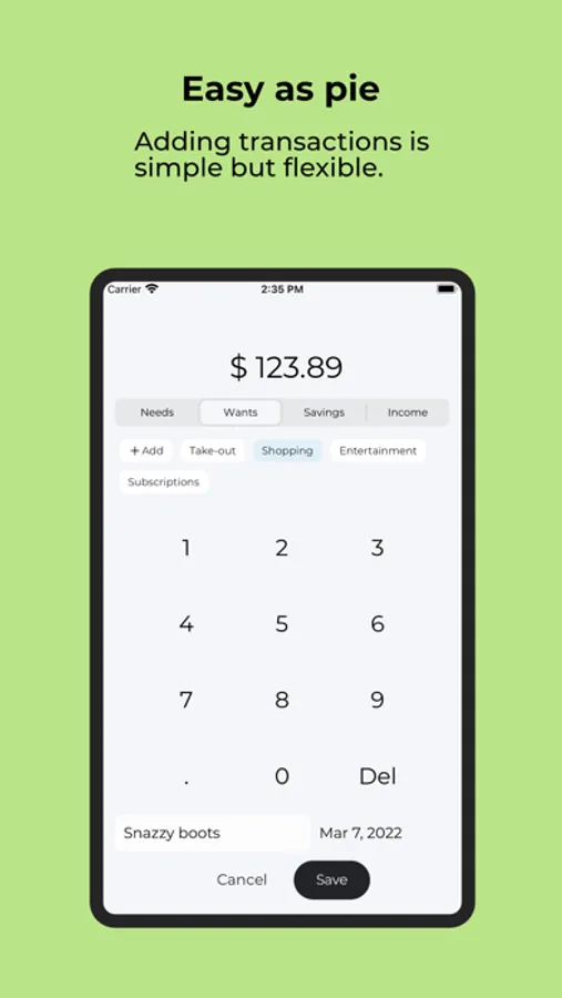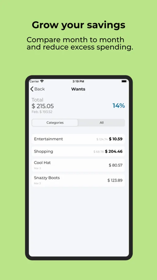 You can assign a category to your transaction to get more granular information about your spending habits and compare how much is spent month over month.