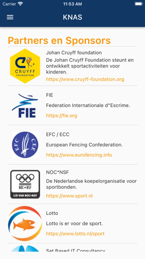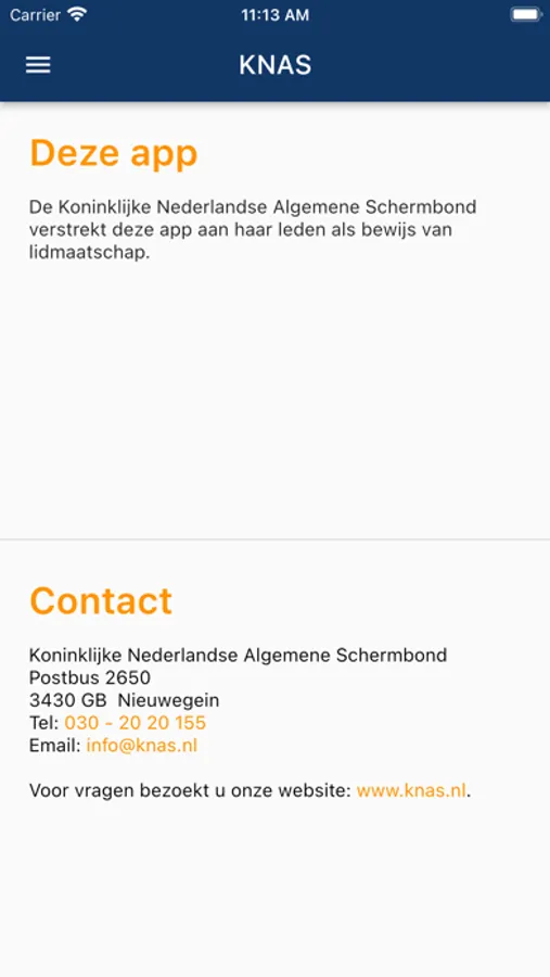 De Koninklijke Nederlandse Algemene Schermbond verstrekt deze app aan haar leden als bewijs van lidmaatschap.