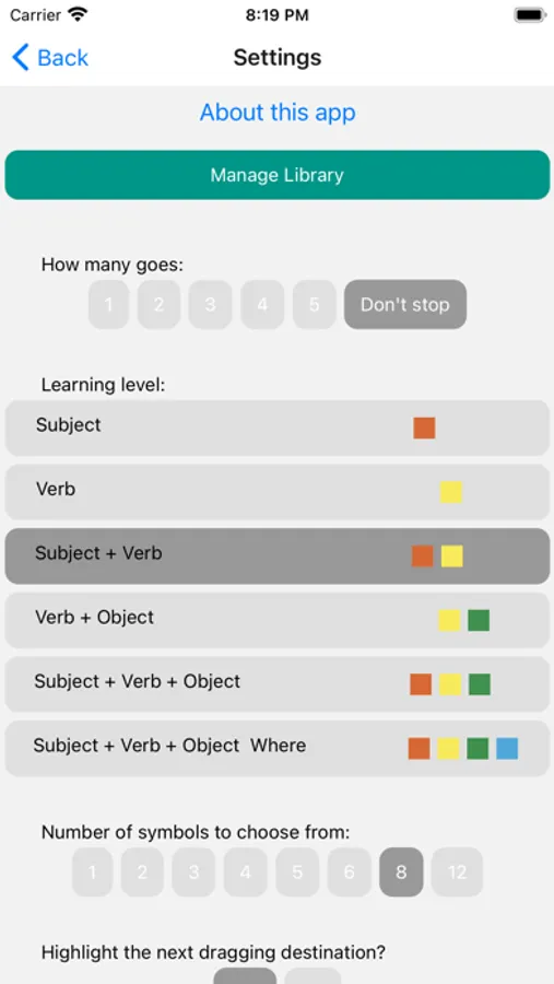 - Set the level for what is needed. You can set what you want to practice, how many options are available and so many more.