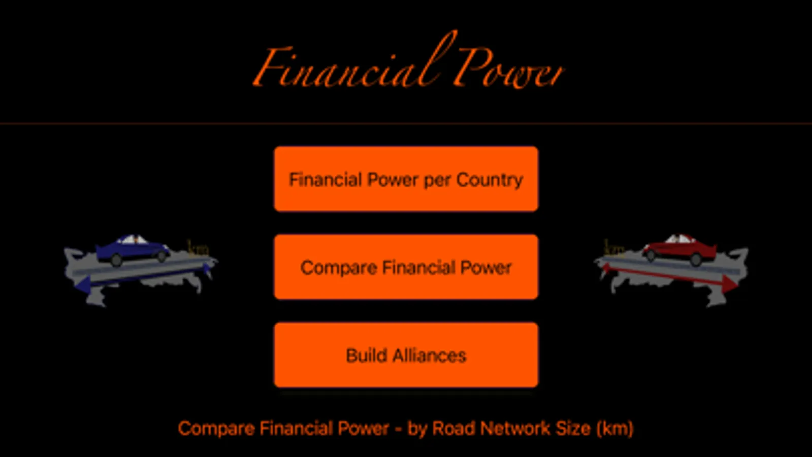 ‘Financial Power' app bases on the most recent information and materials in the greatest world library - Wikipedia (wikipedia.com), UN statistics and World Bank statistics.