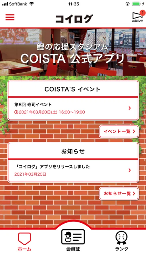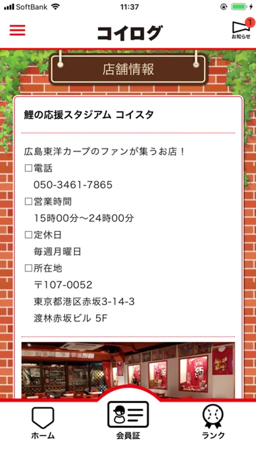 ・会員証機能はQRコードをお店の人に見せると来場回数が増えます。