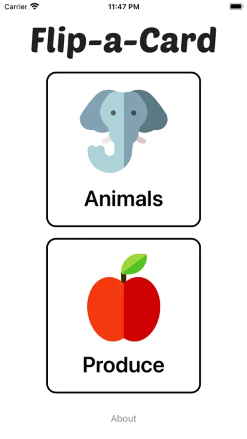 A fun & simple flash card learning app where you can go through and "flip" each card over to reveal the first letter and names!