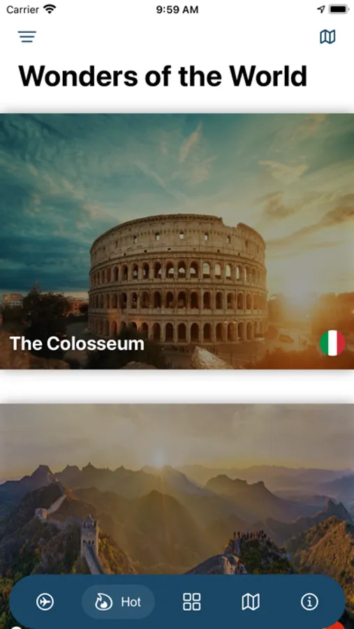 This application was created with the aim of making all the information necessary to plan a trip and be able to admire all the wonders that the world offers us easily accessible to all users. All the sites proposed in this application are UNESCO protected sites and there are 1121 worldwide, among these you will certainly remember the seven wonders of the modern world for which you will find a dedicated section within the application. What are you waiting for? pack your suitcase and start exploring our fantastic planet.Have a great trip!