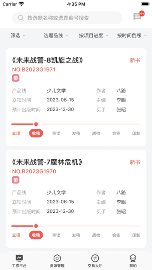 支持图书、期刊、文创产品的生产过程管理,协同图书生产的各个角色和各个环节,勾连图书生产与图书市场,达到快出书、出好书的目的。