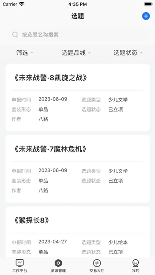 提供选题和版权等编辑服务的公共交易平台,方便筛选感兴趣的资源。