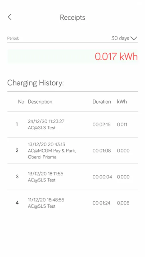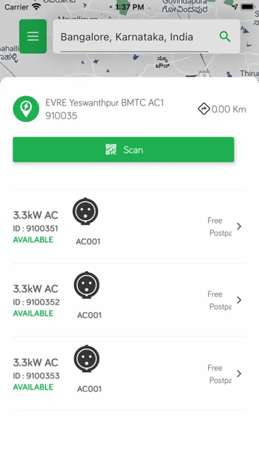 EVRE allows user to charge their EV from mobile application, based on their selection of Charge points