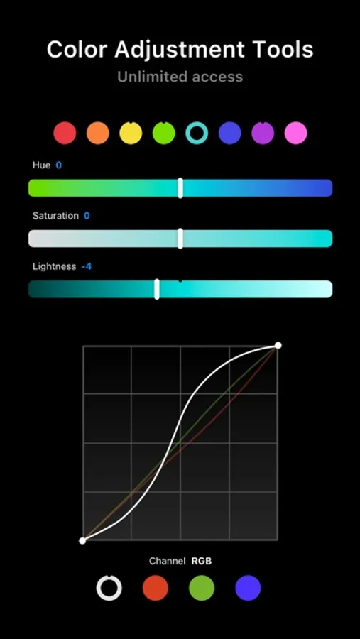 Adjust the light and color of your photos and videos with tools like brightness, contrast, hue, saturation and more.