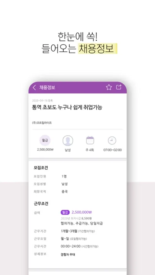 - Customized search for jobs mainly worked by foreigners! It is convenient as you can set a total of 6 custom conditions!