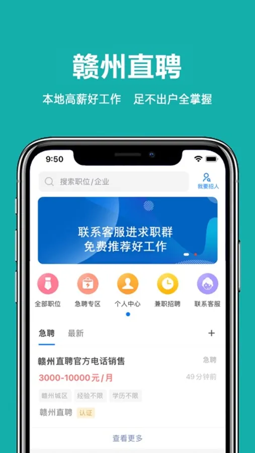 赣州直聘是赣州市赣州天生我才人力资源有限公司旗下招聘网站,致力于为求职者提供赣州本地优质招聘信息、为企业提供招聘渠道,帮主每一个求职者在赣州直聘找到合适的工作!