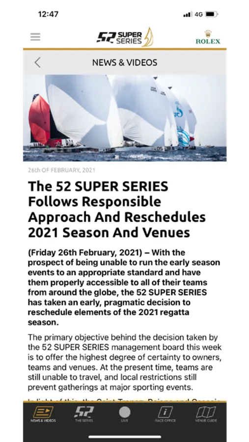 - News & Video – Be the first to receive race highlights and news articles. Access the 52 SUPER SERIES from anywhere in the world.