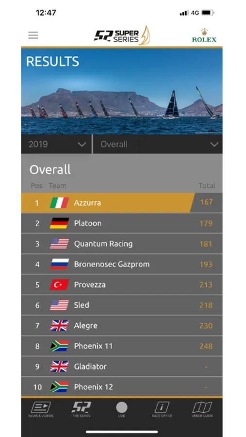 - Live Race Tracking – State of the art GPS tracking technology allows you to watch every 52 SUPER SERIES regatta in stunning virtual reality.