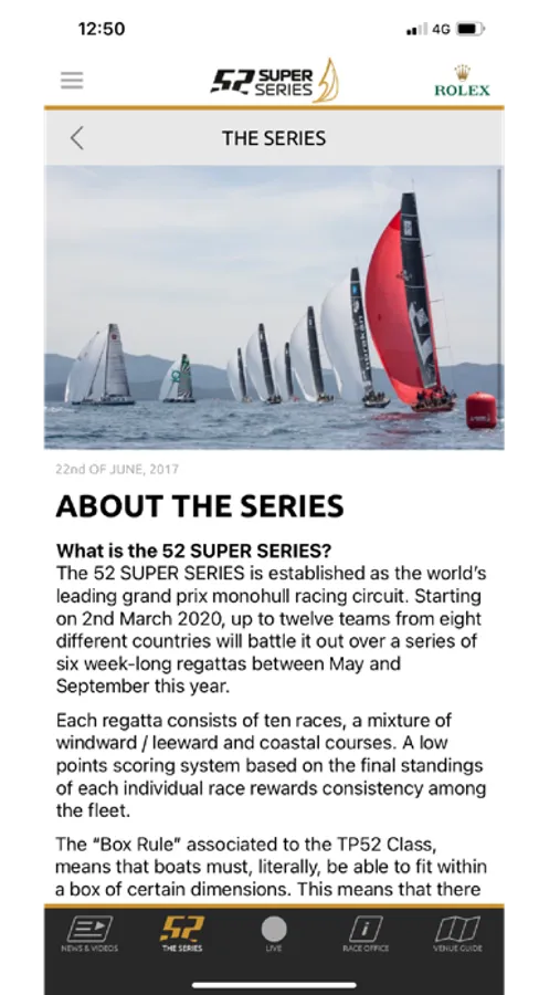 The Official 52 SUPER SERIES App is the ultimate companion to the 52 SUPER SERIES, delivering live event tracking, real-time results and full race information straight to your mobile device as it happens as well as race summaries and replays.