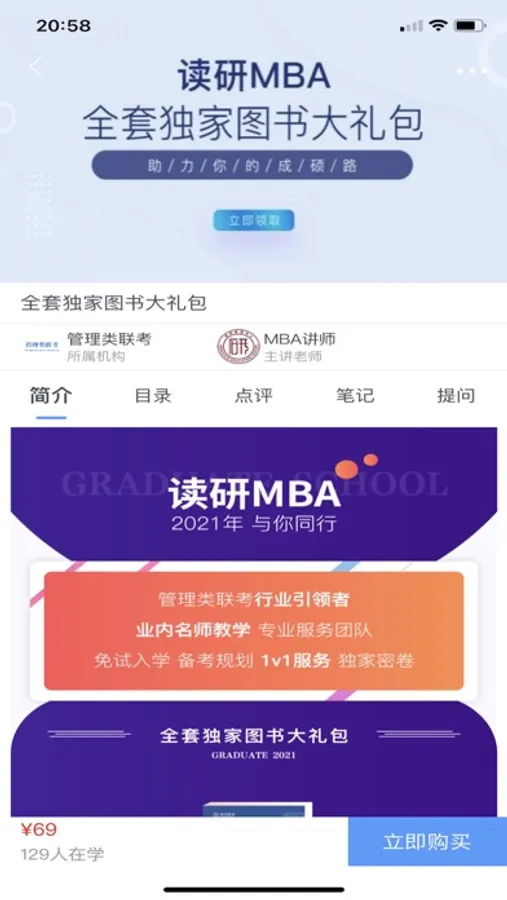 读研MBA——你备考路上的好帮手!是一款针对管理类联考的学习型App,包含视频课程、直播课程、题库练习、学习记录、互动问答、官方正版配套教材、公益模考、线下课程等板块,现已形成一个高效的学习系统,还有业内专业的辅导名师助你科学备考。只要你跟着读研MBA认真复习,势必上岸!用更少的时间,考更高的分数,一切尽在读研MBA!
