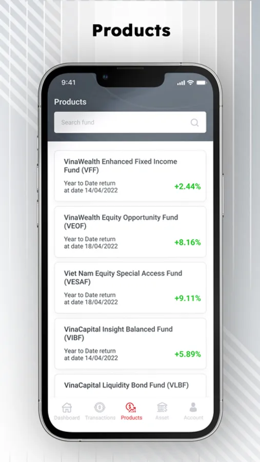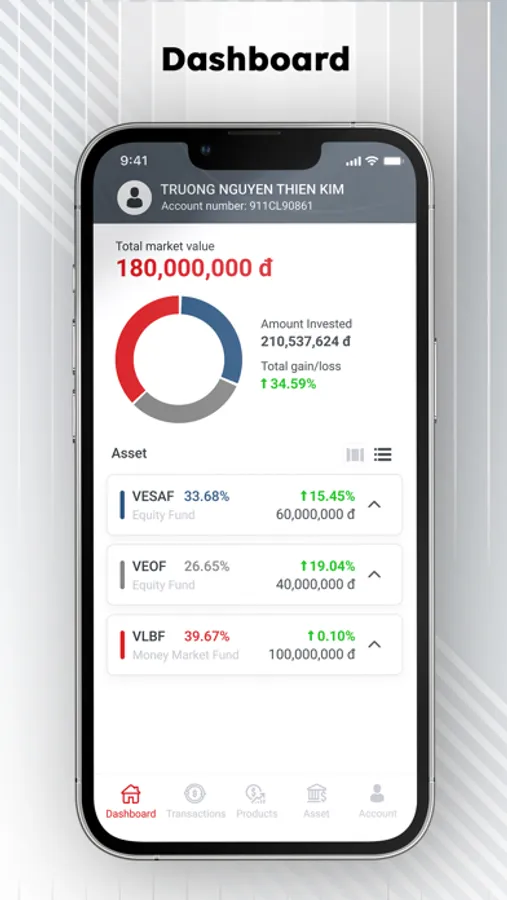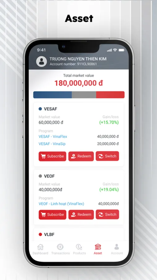 The app has a simple, clear, and easy-to-navigate interface. Investors can easily manage and track the performance of their portfolios, place orders to buy, sell or switch open-ended fund certificates, examine transaction histories, as well as other useful features.