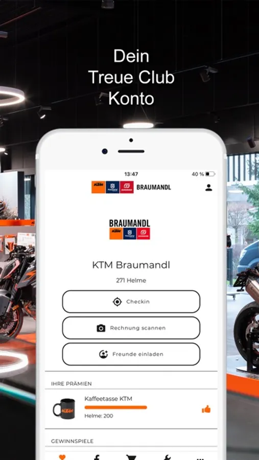 Du willst auch Teil im KTM Braumandl-Kundenclub sein? Dann los! Lade dir die KTM Braumandl-App jetzt herunter und das große Punkte sammeln kann beginnen!