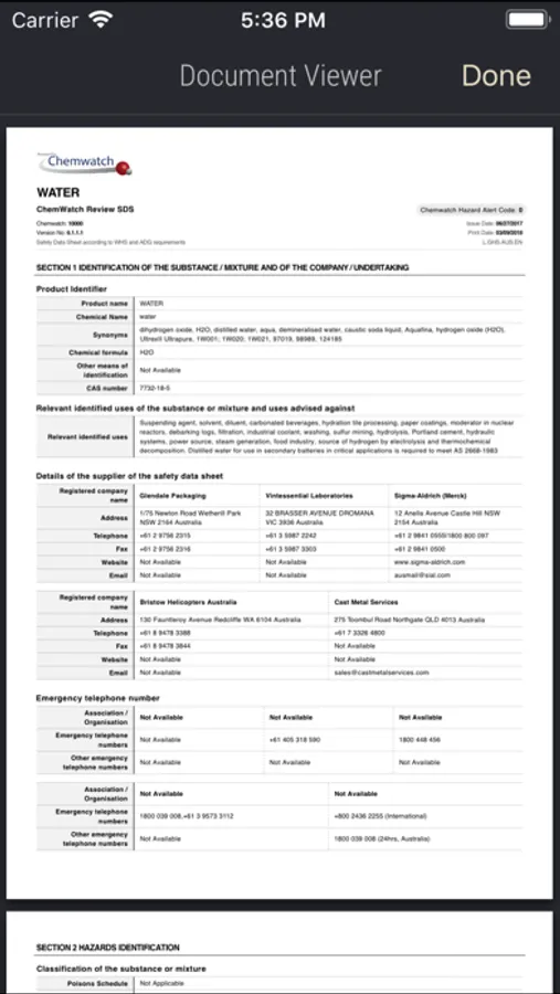 View Chemwatch Gold Safety Data Sheets (SDS)