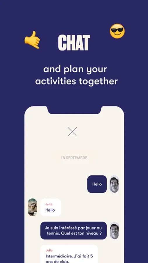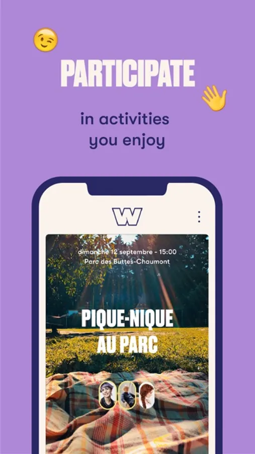 1) Publish what you want: chatting, having a drink, finding a sports partner, having a picnic, playing board games, etc. Your profile will be visible to other users with common interests.