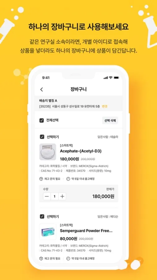 랩매니저 스토어는 국내 최대 규모로 80개 브랜드, 200만개 시약과 연구물품을 취급하고 있어요.