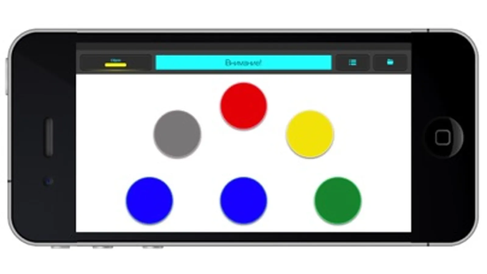 This test allows you to determine the reaction time of a user's choice. It is necessary to quickly select the appropriate color (the color of the central circle) from the five offered.