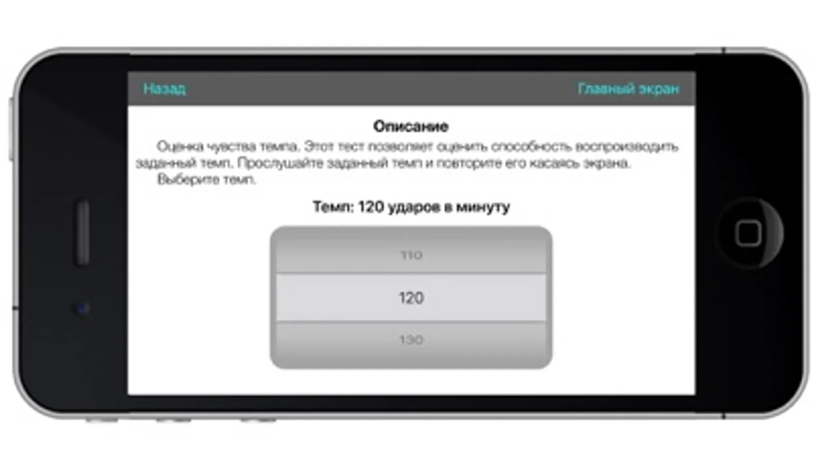 This test allows for high susceptibility to a given tempo. Read the given tempo and repeat it by touching the screen.