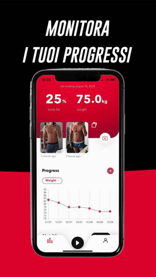 Avrai sempre sotto controllo la tua attività fisica: potrai visualizzare quali esercizi sono previsti nel tuo piano di allenamento, i tuoi progressi e come cambia il tuo fisico nel corso del tempo.