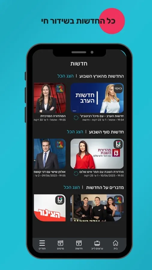 חדשות: צפייה בכל מהדורות החדשות המשודרות בלייב, או בזמן שמתאים לכם באמצעות Catch-Up. כל תוכניות האקטואליה וכל העדכונים על כל מה שקורה בישראל בזמן אמת