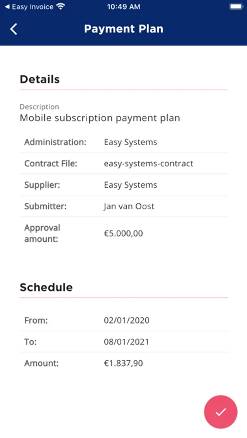 Easy Approve is de app die het mogelijk maakt om via de smartphone altijd en overal, uw betaalplannen onder contracten of aankoopaanvragen goed te keuren, te controleren en te retourneren.