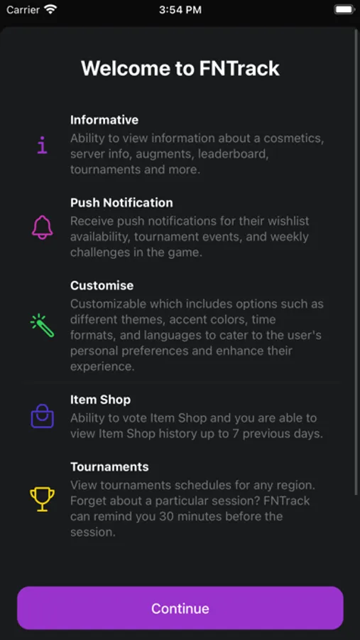 When you’re logged into FNTrack, you will be able to receive Push Notifications for your wish lists cosmetics, weekly challenges, tournaments and more.
