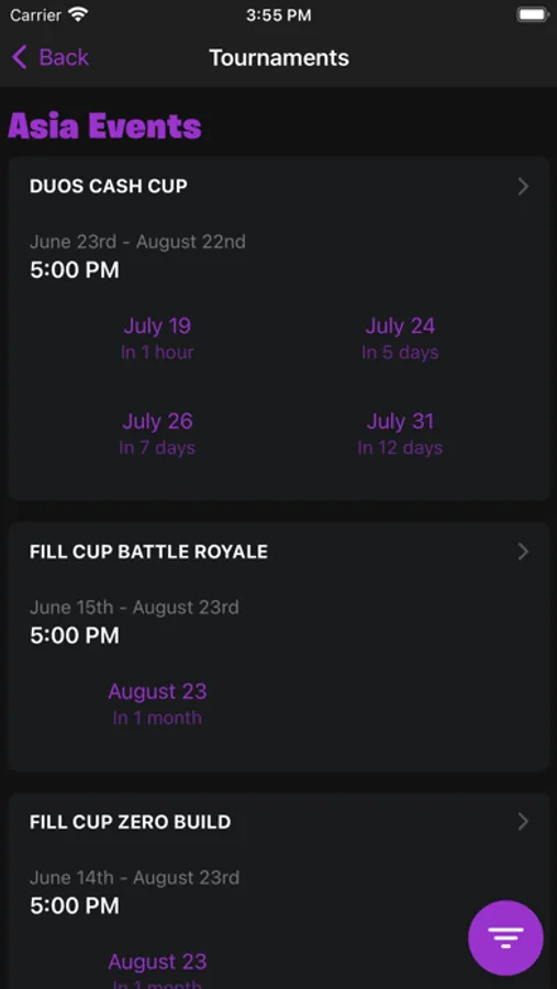 View all upcoming tournaments in a unified view so you will be able to see which tournaments is happening when and how long exactly. Besides that, select any tournaments to view more in dept details such as every session, scorings, leader board and more.