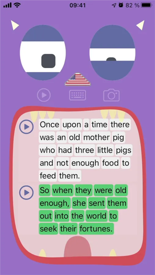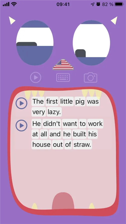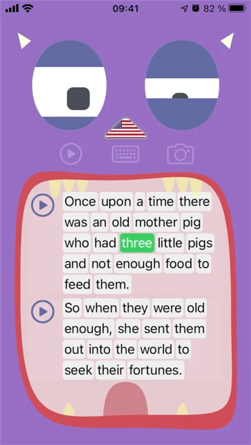 You can scan text with camera, copy paste or write it yourself with the keyboard. The monster will recognize the language from the scan and read it for you.