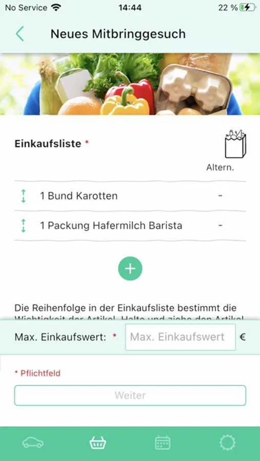 Bei uns kann Mobilität sogar noch mehr: Wie wär’s mit unserer Mitbringen-Funktion zur gegenseitigen Unterstützung bei Einkäufen? Alles in einer App!