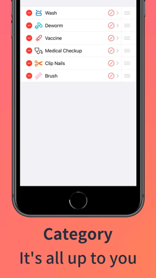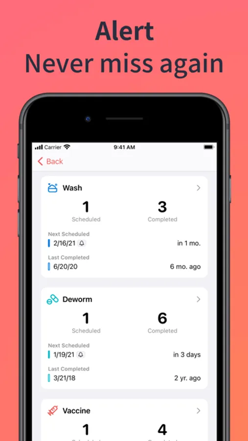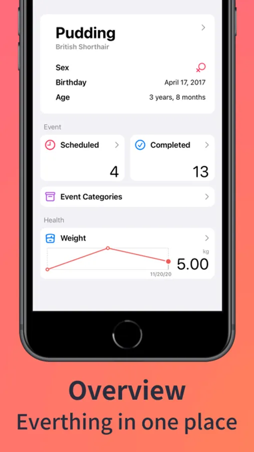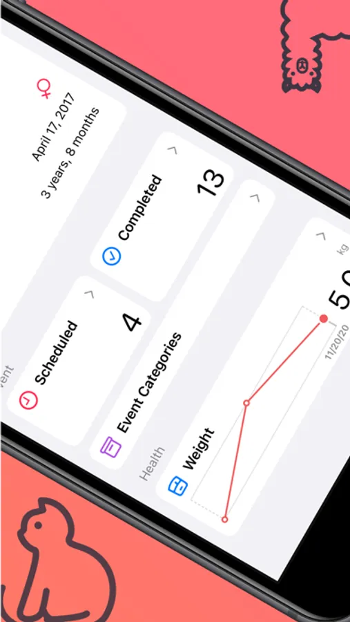 We understand that vaccines are not the only thing we need to worry about. AnyPets supports creating custom event categories, you can set the name, icon and color of them. AnyPets can also count the events by different categories and make the progress clearly visible.