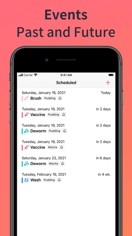 Always forgetting your pets' vaccination and deworming schedule? Don't worry, AnyPets will help you. Add an event to the app: it can be a completed event or a future schedule. This makes it easy and visible to browse all past and future events through the list.