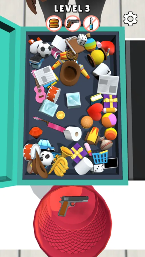 You need to Match 3D objects to remove bad items from luggages !