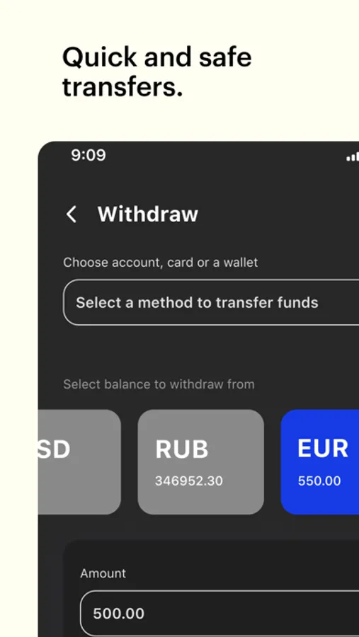 ● Commission free payments in EUR, USD or local currency to a bank card or bank account