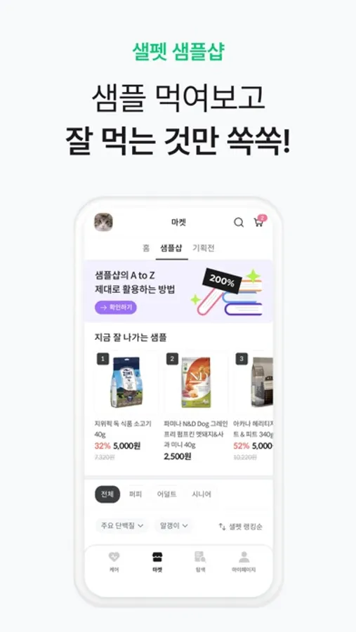 - 다양한 사료 샘플 한번에, 먹여보고 구매할 수 있는 샐펫 샘플샵