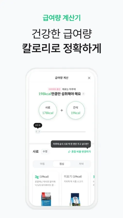 - 혼합급여 부터 다이어트 급여량까지 상황에 따라 정확하게!
