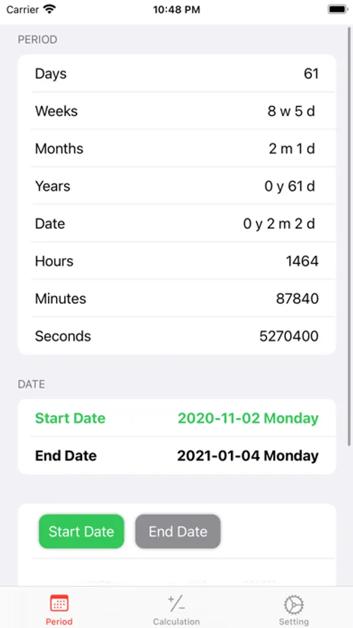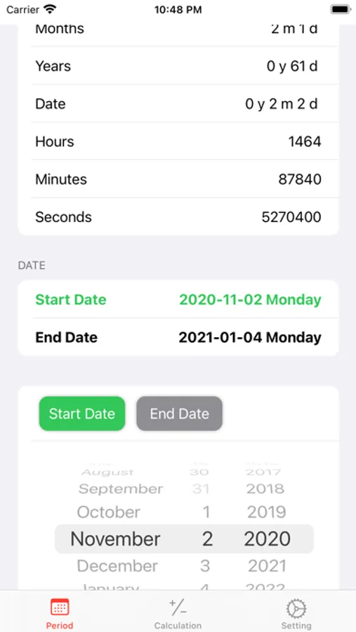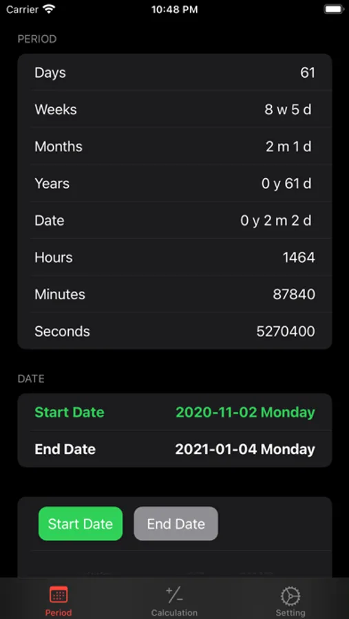 The date calculator helps you quickly calculate the interval between two dates, including day, week, month, year, hour, minute, and second.