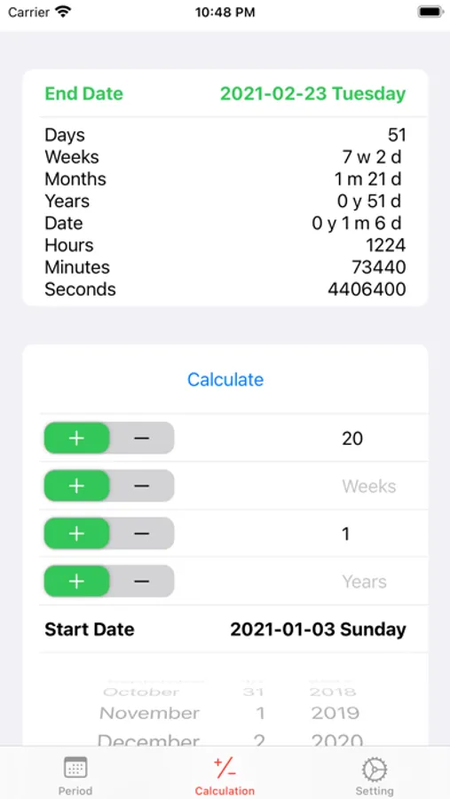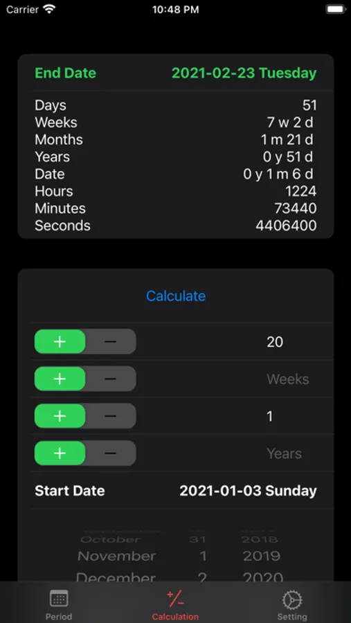 - Support the use of a calculator to add and subtract a date, and you can flexibly add and subtract any cycle independently