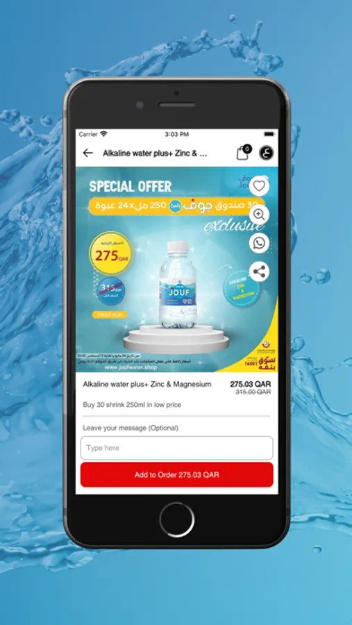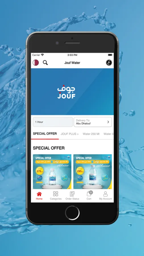 Jouf Water application is the place where you can buy healthy water following simple steps. Choose the amount & bottles that you want, then click on order, write your address, if you want to have it by scheduled delivery, or you can choose another way to get it which is by pick up.