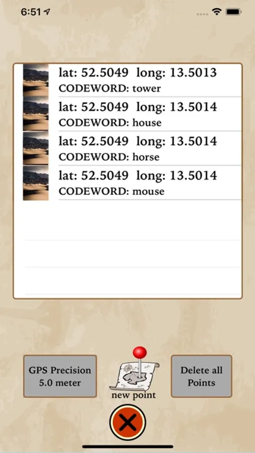 After this the hunter can start. They will be guided by a pointer to the checkpoints. If the hunter come close to the next checkpoint your photo of the search area becomes visible. With the solution word the hunter unlocks the next checkpoint. If no solution is saved you can skip this.
