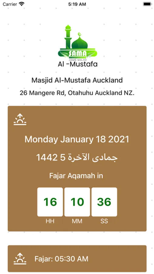 2). The notifications are sent for all five times prayer timings, i.e., Fajr, Zuhr, Asar, Maghrib, Isha and Jummaa.