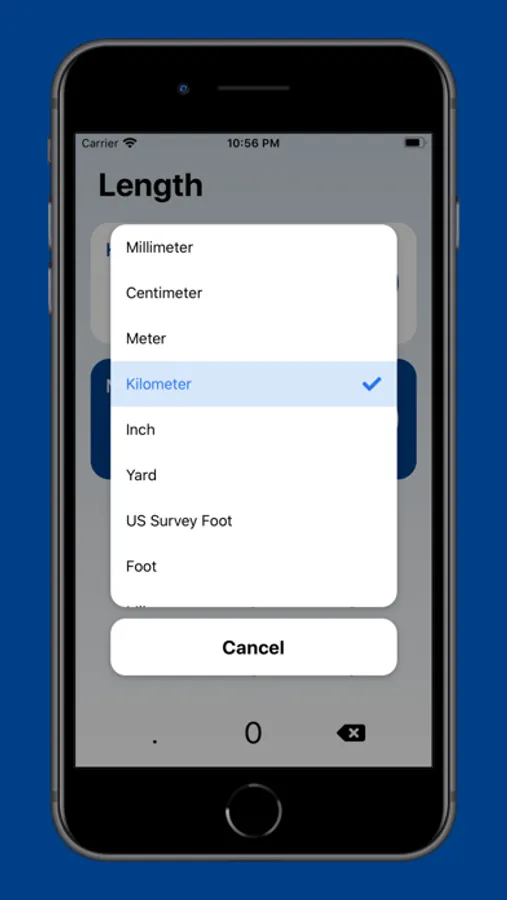 Length: Millimeter, Centimeter, Meter, Kilometer, Inch, Yard, US Survey Foot, Foot, Mile