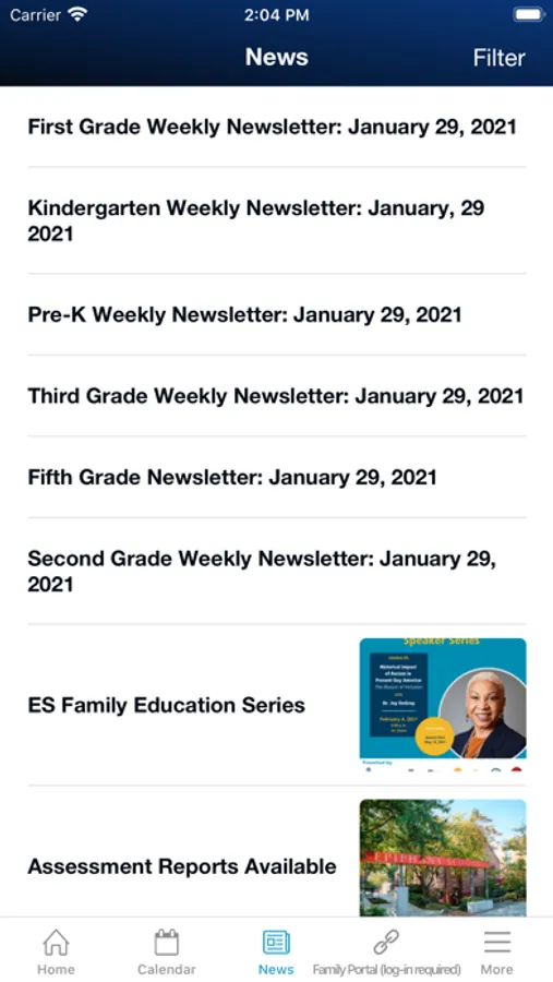 - Browse and filter calendars for information about upcoming events and uniform days and sign up for push notifications